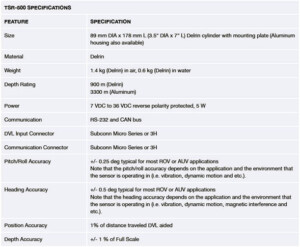 - El TSR-500 se conecta a cualquier DVL que pueda proporcionar cadenas PD4 o PD6. Se comunica con los DVL a través de RS-232 o bus CAN.